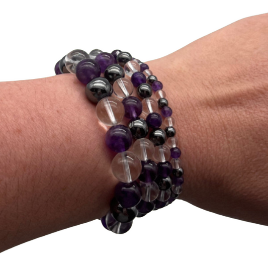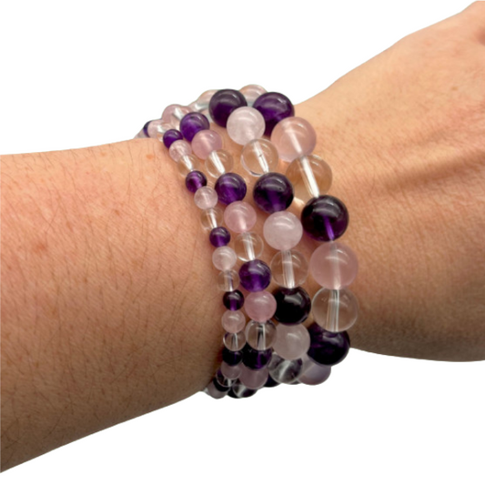 Bien-être en Améthyste Cristal de Roche et Quartz Rose Bracelet en Pierre Boule