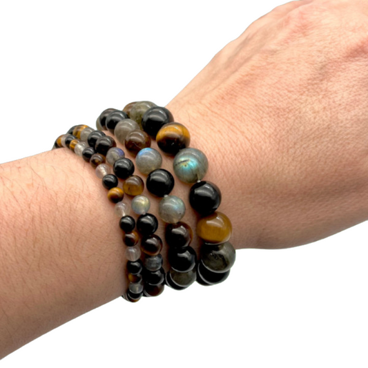 Oeil de Tigre Labradorite EXTRA et Tourmaline Noire Protection Extrême Bracelet en Pierre Boule