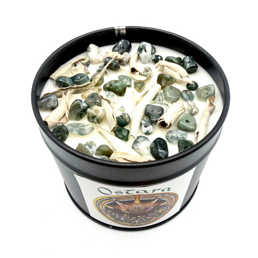 Bougie Sabbat Ostara - Agate mousse - Equinoxe du Printemps - Précommande Édition Limitée