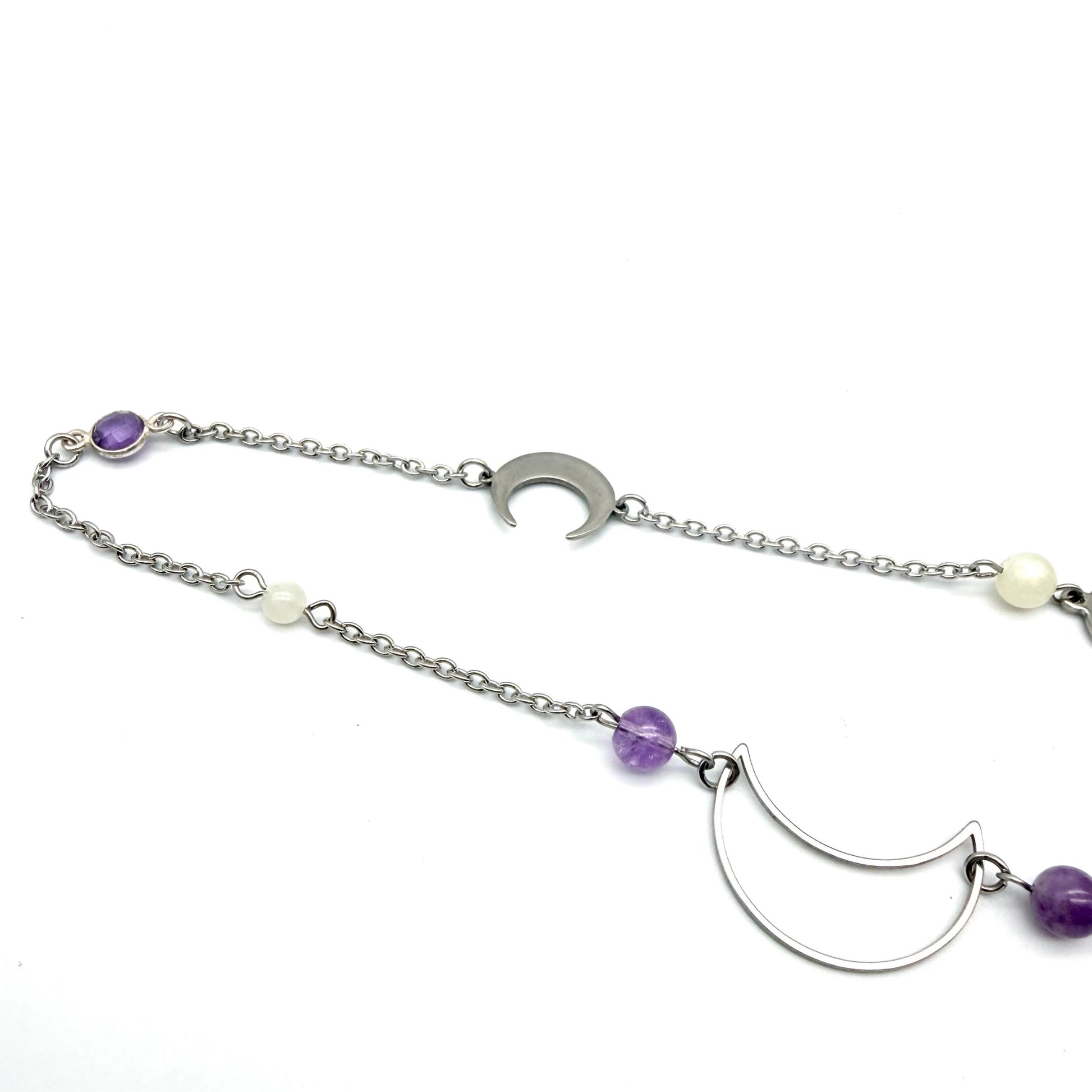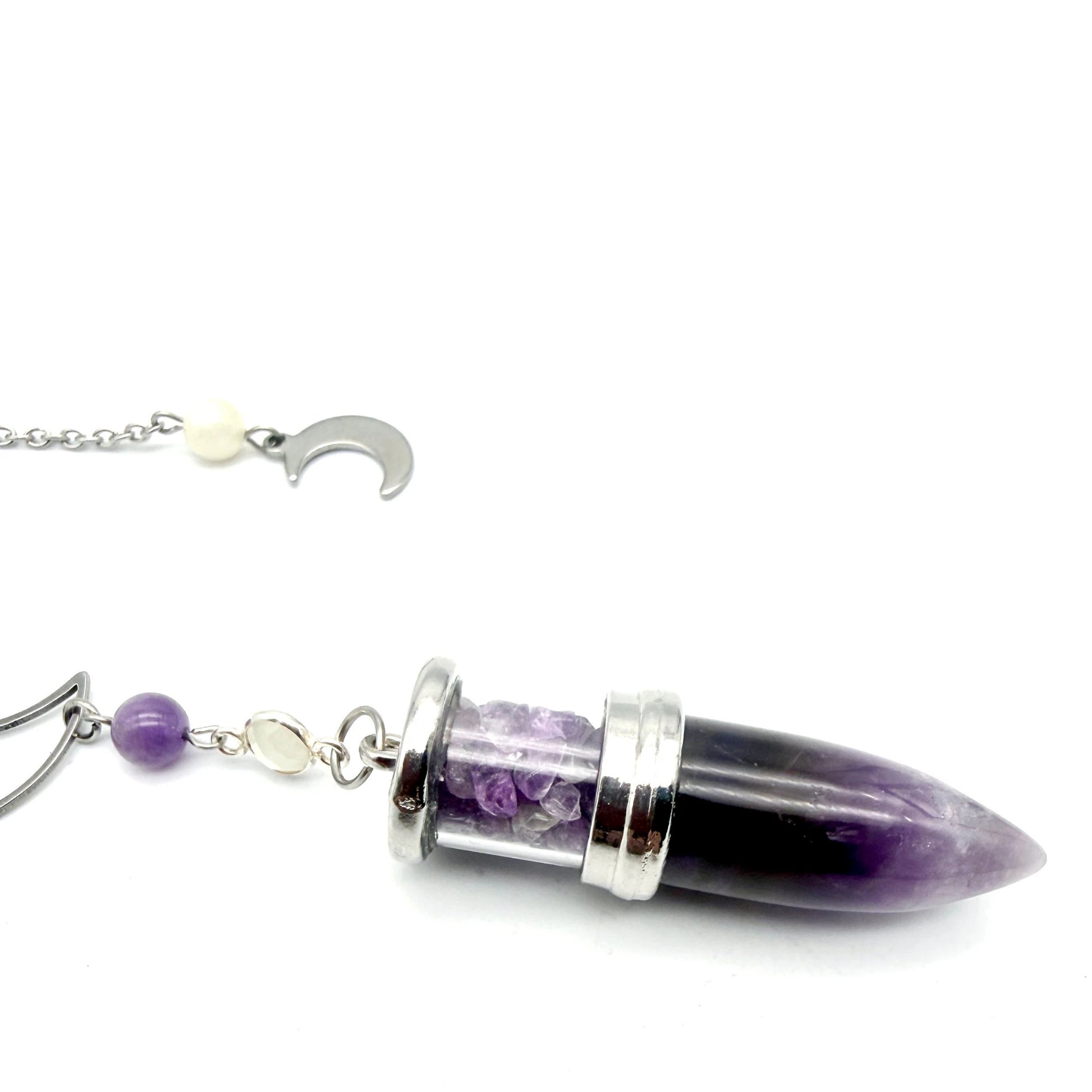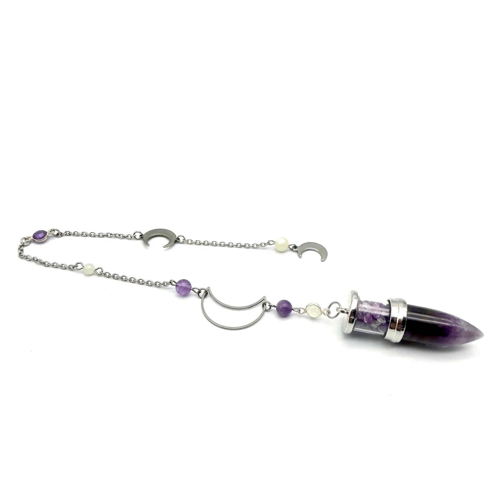 Pendule Améthyste et Pierre de Lune – Pierre Naturelle - Pièce Unique