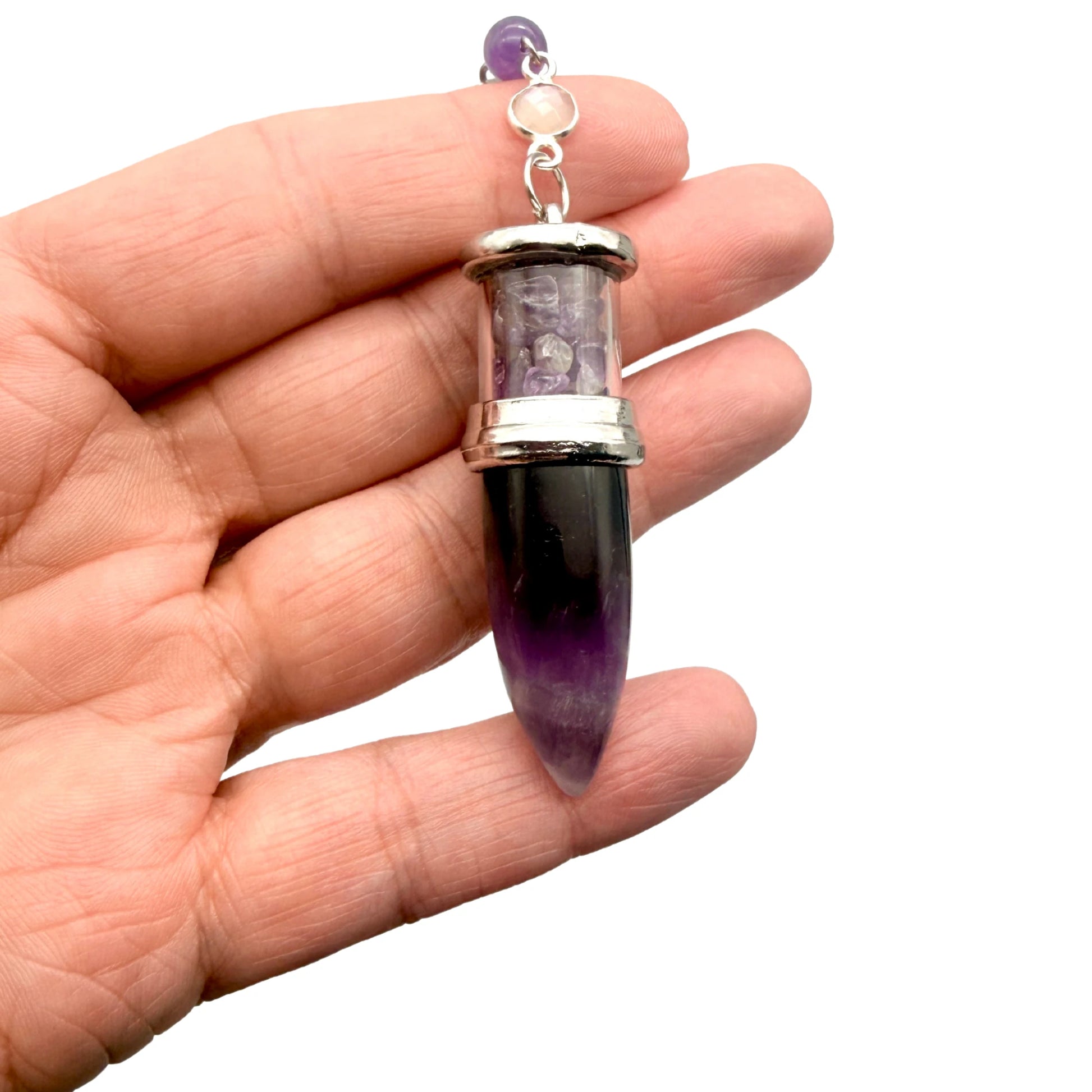 Pendule en Améthyste et en Pierre de Lune en forme de pointe